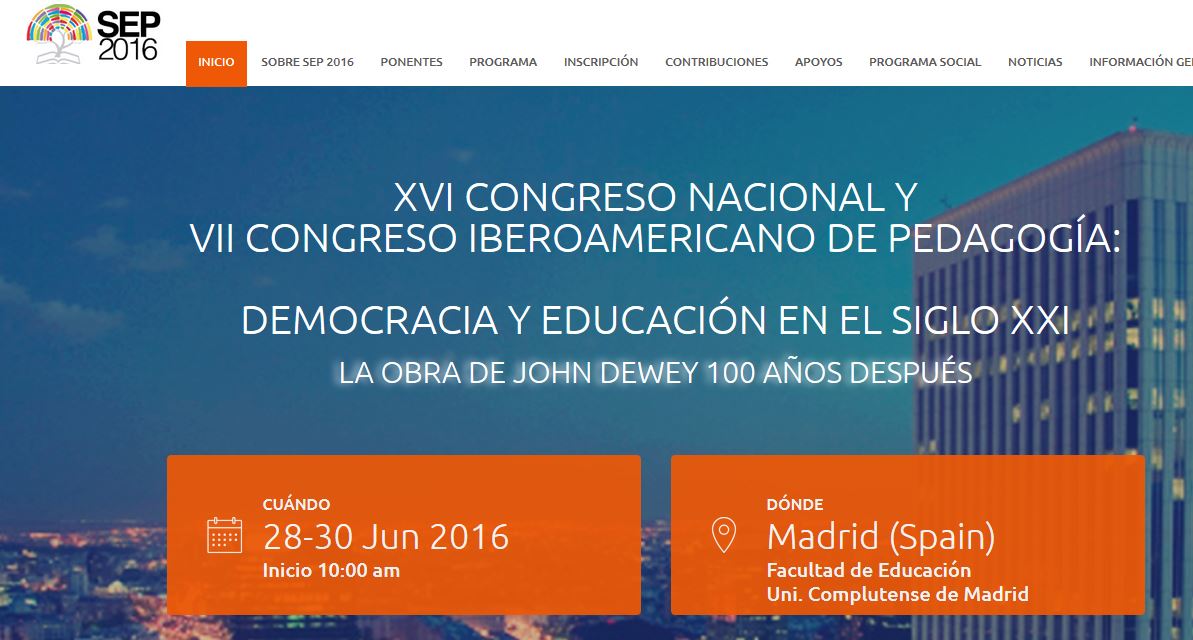 XVI Congreso Nacional y VII Congreso Iberoamericano de Pedagogía (Madrid, junio 2016)